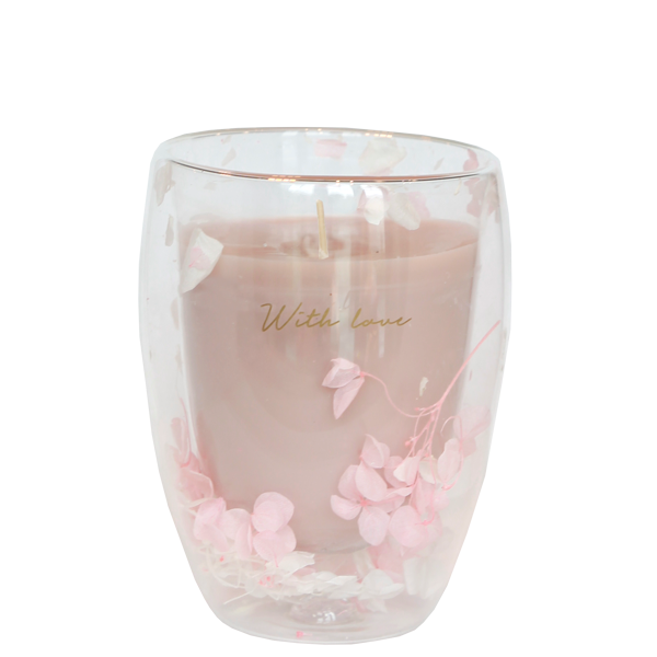 Deze luxe geurkaarsen hebben een dubbele wand waar gedroogde bloemetjes tussen zitten. Een èchte eyecatcher! Deze kaars ziet er niet alleen leuk uit, als de kaars is opgebrand, kan je het glas gebruiken als theeglas of een andere heet of koud drankje. Door de dubbele wand zorgt het glas ervoor dat je drankje warm blijft, zonder dat je handen ook heet worden.