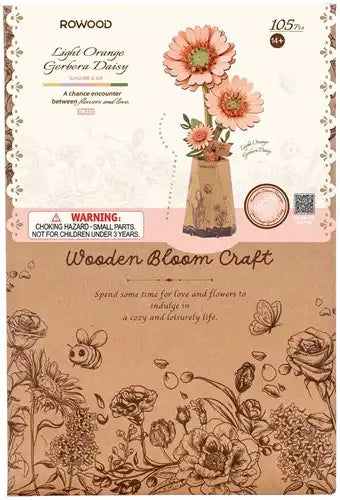 De lichtoranje gerberabloemen in een vaasje is een houten bouwpakket van Robotime voor volwassen en kinderen vanaf 14 jaar. In een kartonnen vaasje dat de bouwer ook zelf maakt met het bouwpakket staan hoofdzakelijk 3 gerberabloemen in verschillende grootte van een mooie zalmrose kleur. Er zit een bordje bij met For you, waardoor dit bouwpakket graag cadeau wordt gedaan voor of nadat het gemaakt is.